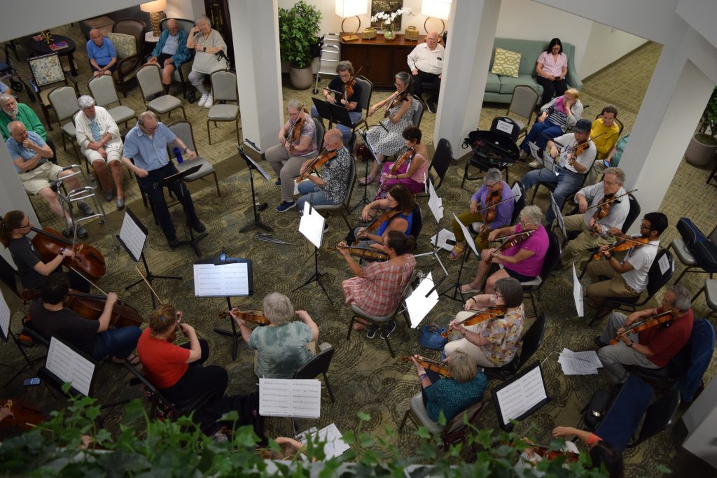 We’re proud to announce another summer of string music reading sessions open to all players, under the direction of Max Hobart. All ages and ability levels welcome! At each session, the group will first read through some well-chosen pieces, Max will work on them a bit, and then the group will play them “for real.” It’s low-key fun and a way to meet other string players, enjoy good music, and engage with the listening audience at our four senior residences this year. Please bring your own music stand, and come for one evening or all of them. Air-conditioned.